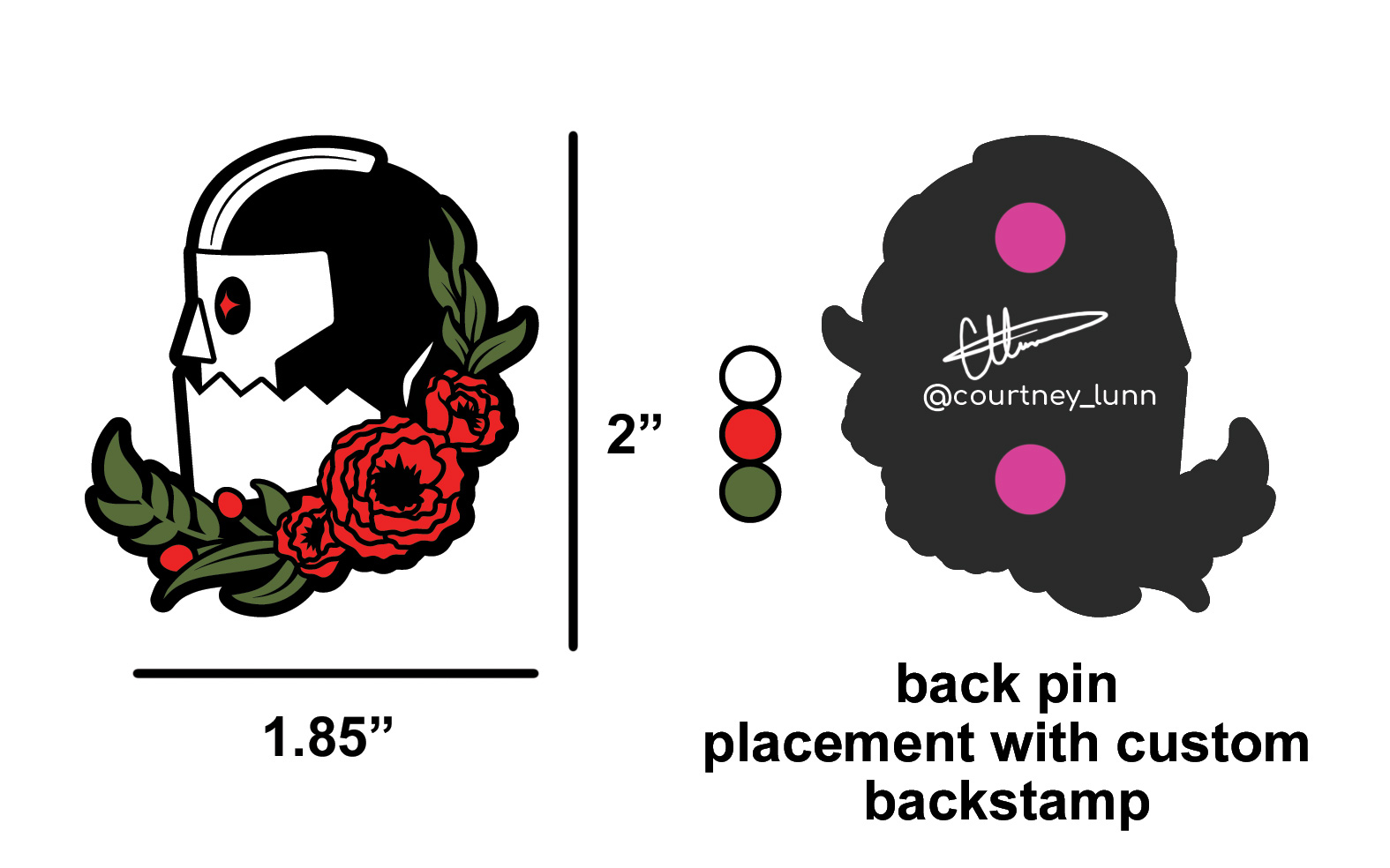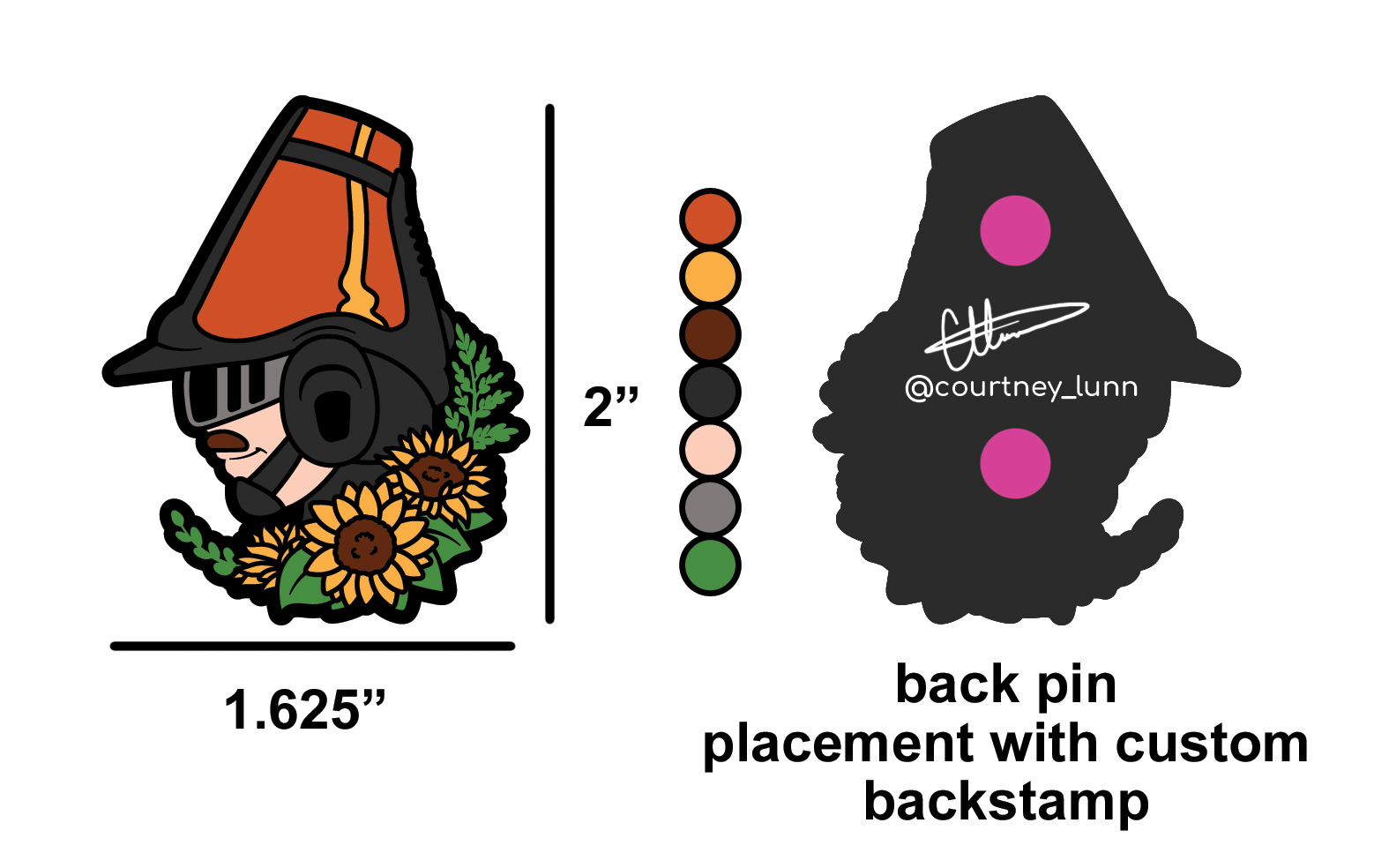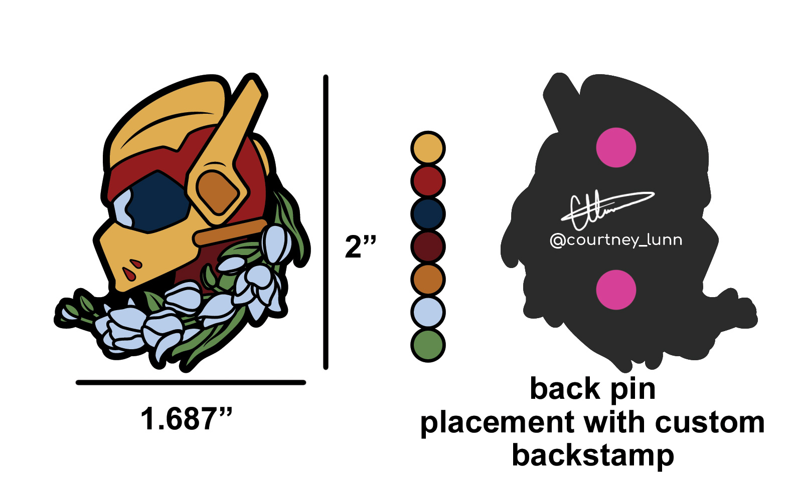 The TWRP pins are 1.8-2" tall, made with soft enamel and black plated metal with 2 rubber clutches on the back to keep them from spinning.